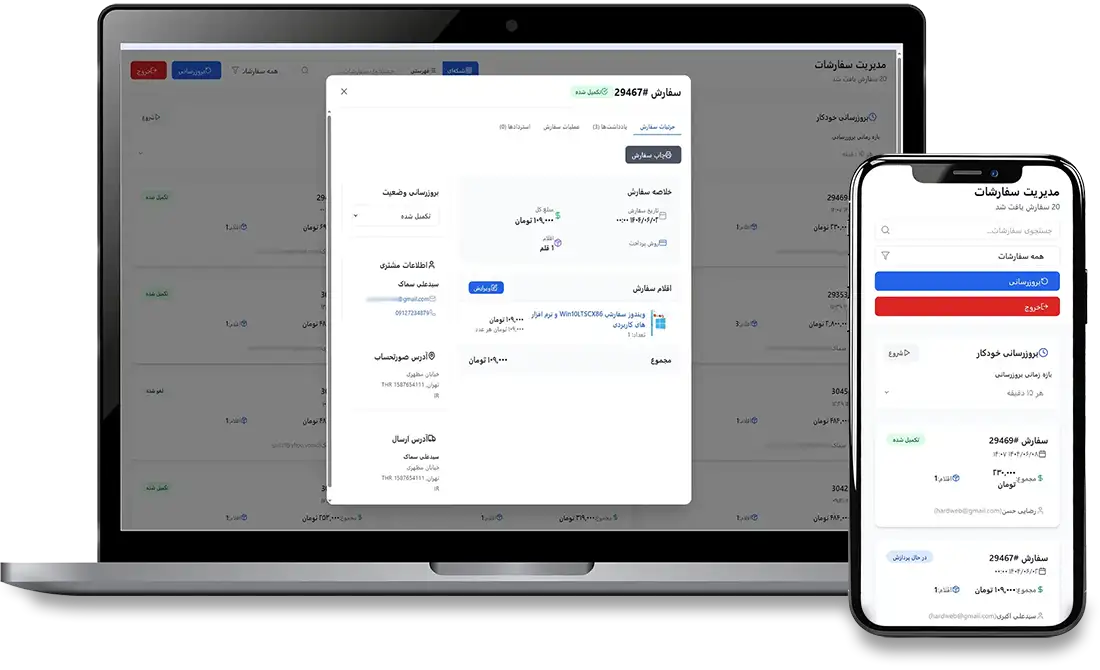 با استفاده از این برنامه، مدیریت فروشگاه اینترنتی دیگر محدود به کامپیوتر نیست. شما میتوانید از طریق موبایل، تبلت یا هر دستگاه دیگری به سفارشات خود دسترسی داشته باشید و در هر زمان کنترل کامل فروشگاهتان را در دست بگیرید.