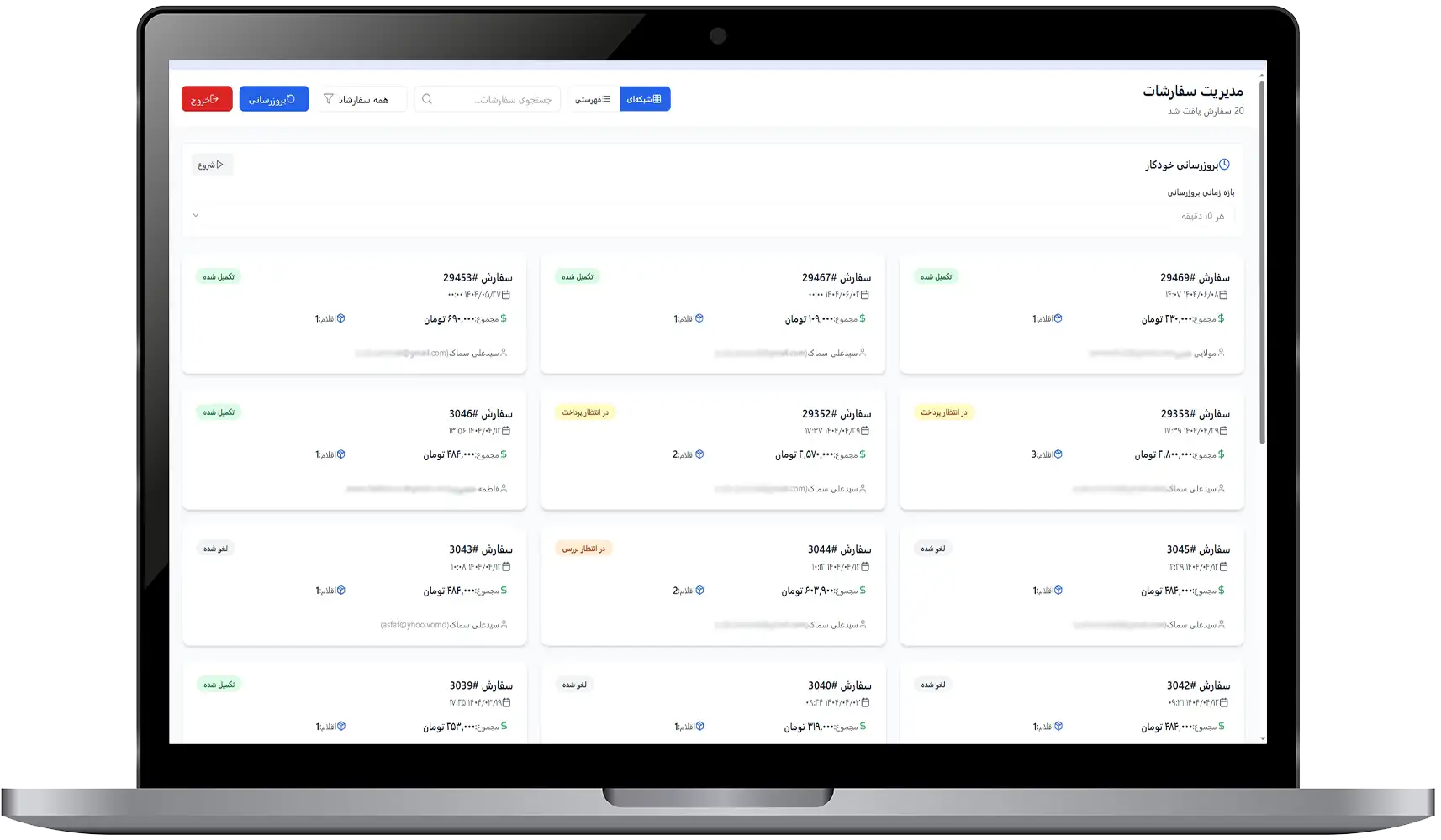 مشاهده کامل سفارشها بهصورت لحظهای
