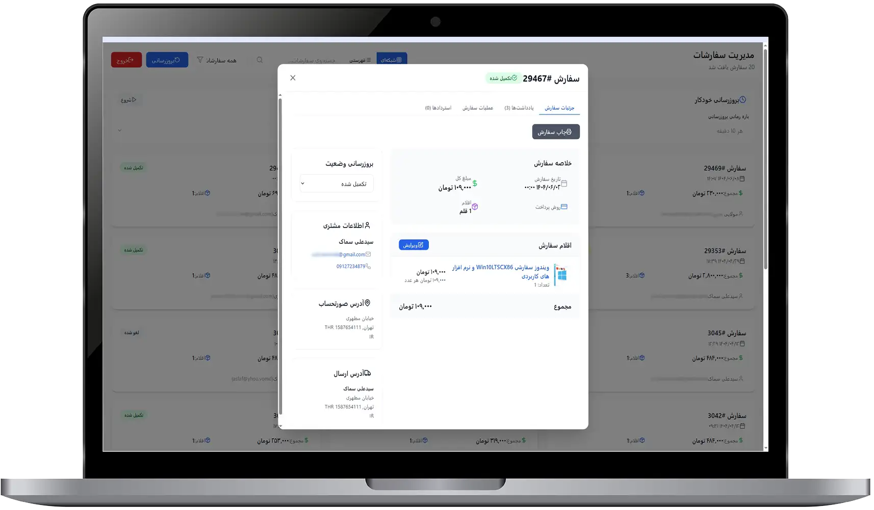 نمایش جزئیات خرید و اطلاعات کامل مشتری